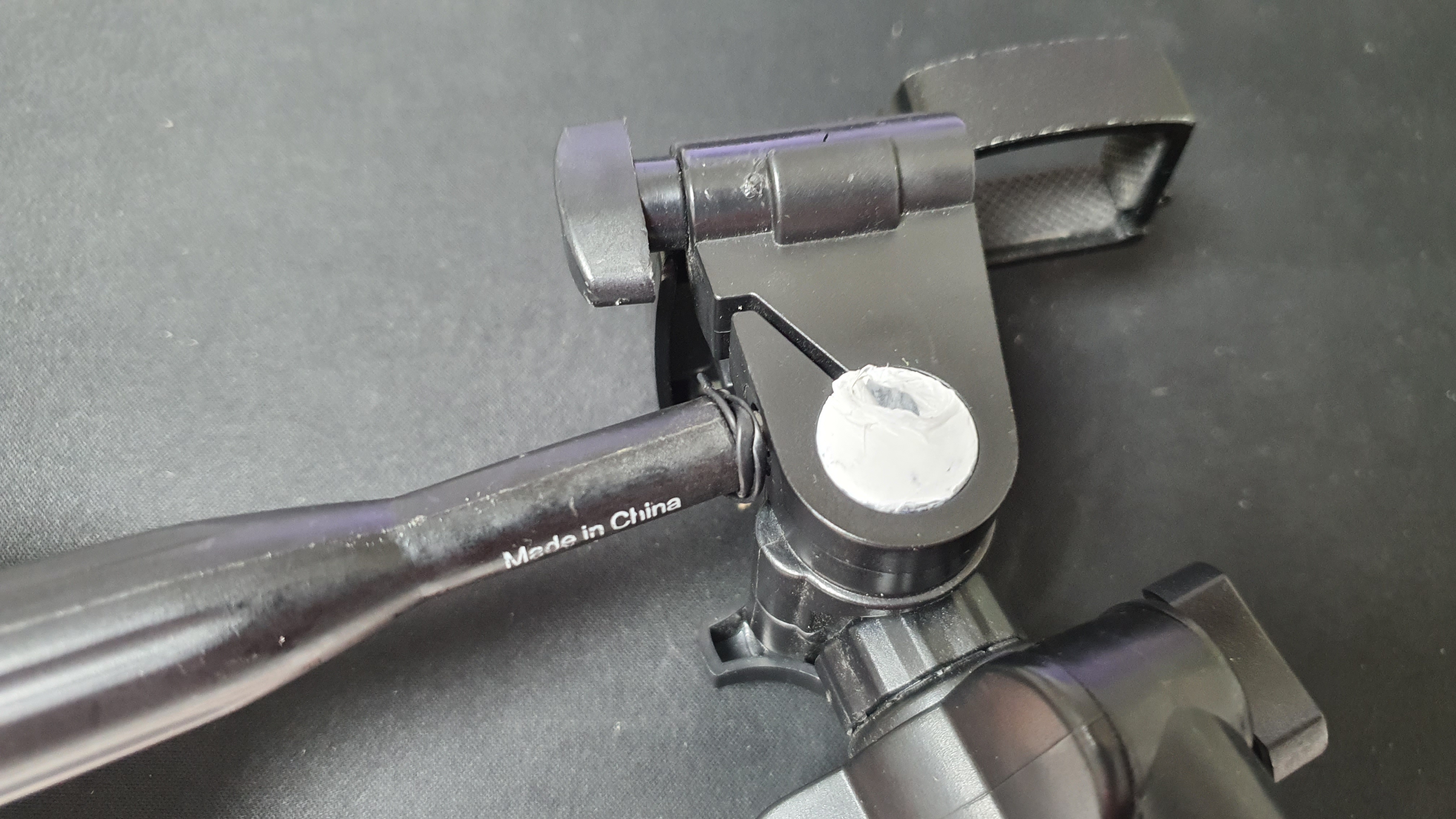 삼각대 손잡이입니다. 손잡이를 돌려서 고정을 풀어주면, 앞뒤로 각도 조절이 됩니다.