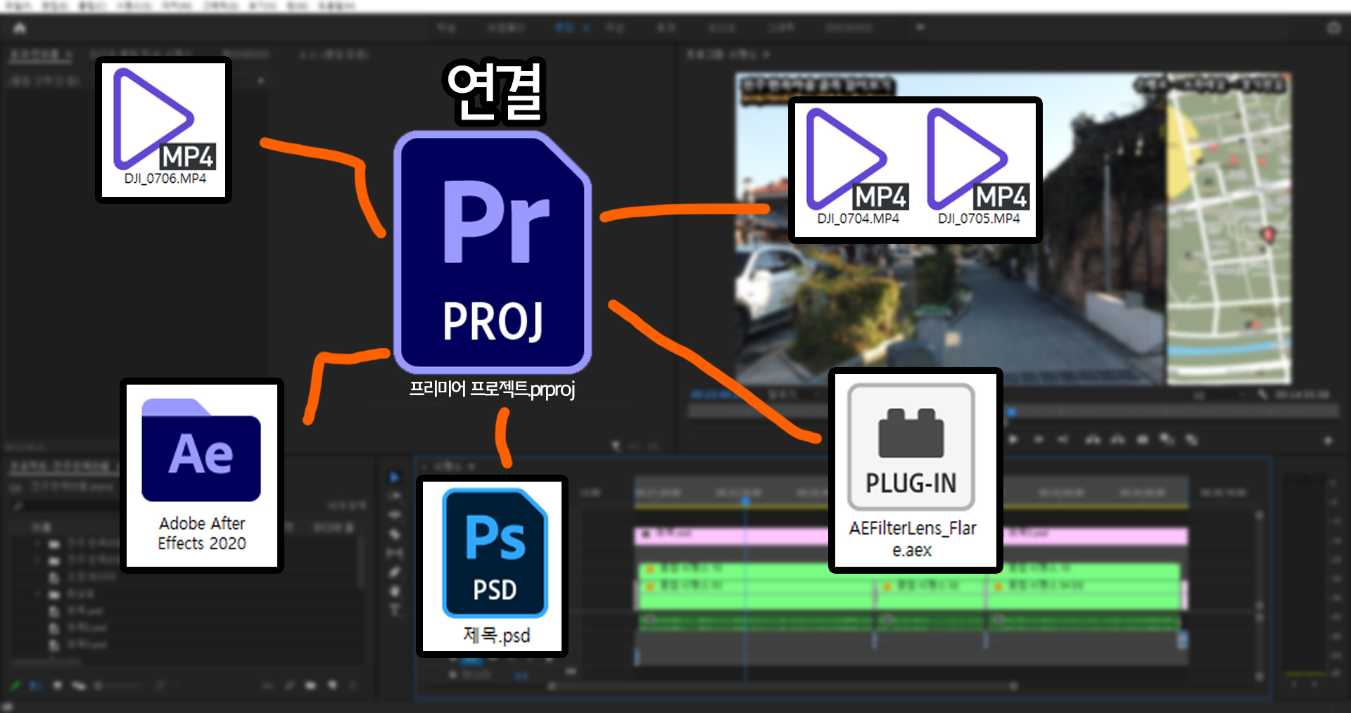 좀 어수선해 보이지만, 사용자가 일일이 찾아서 정리 하지 않아도 프리미어가 알아서 파일들을 모아 줍니다.