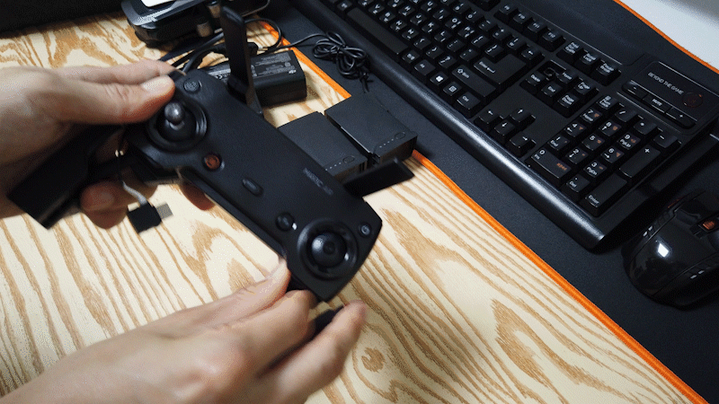 매빅 에어(MAVIC AIR) 무선 조종기 좋아요. 가볍고, 손에 착 달라붙고, 휴대하기 좋게 조이스틱을 빼서 보관할 수도 있어요.