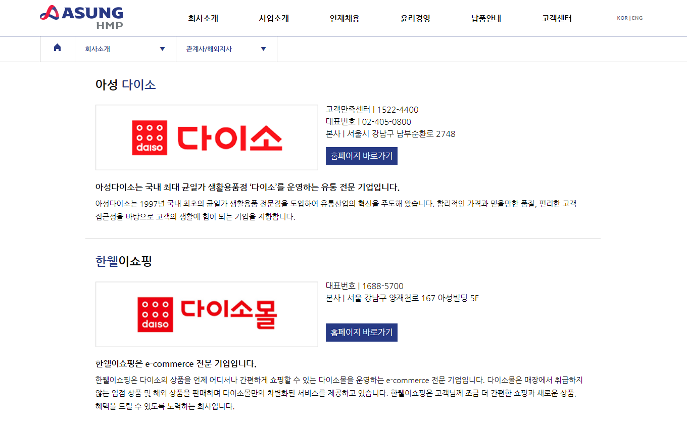 (주)아성 hmp(전 한일맨파워)는 다이소를 만든 회사입니다.
