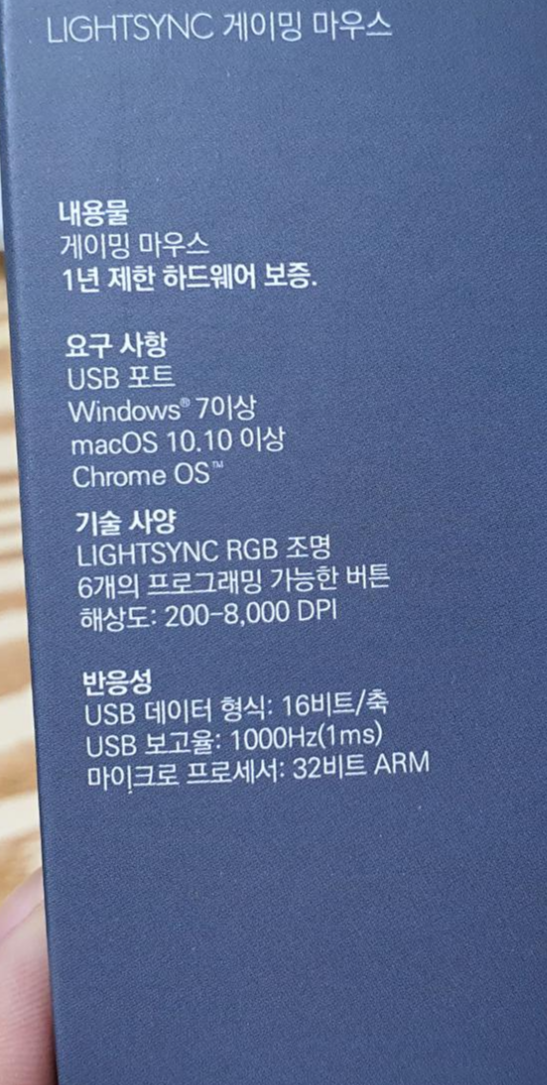 기술사양: lightsync RGB 조명. / 6개의 프로그래밍 가능 버튼. / 해상도 200-8000 DPI. /