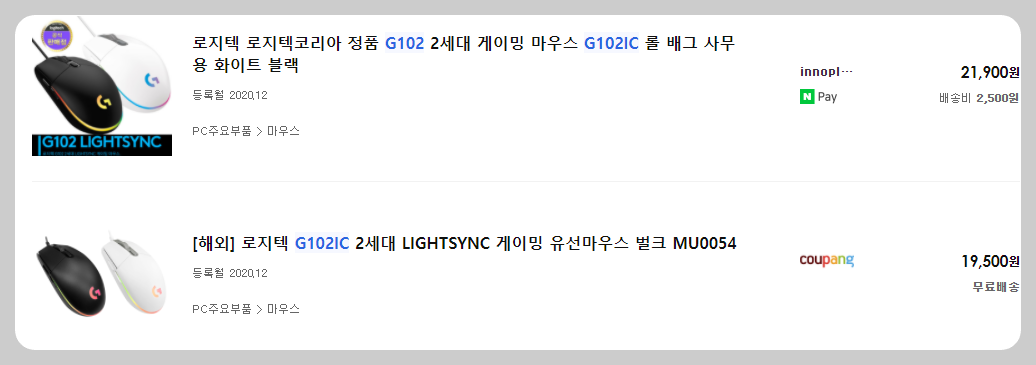 2022년 현재 로지텍 g102 마우스 가격 시세는 아래 링크를 확인해주세요.