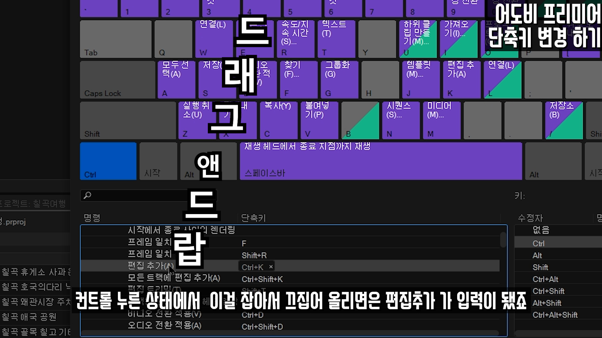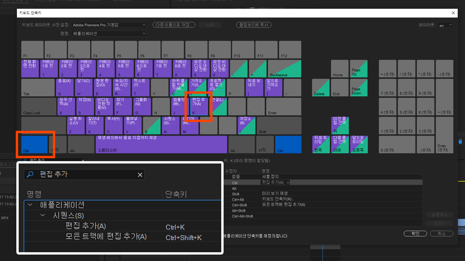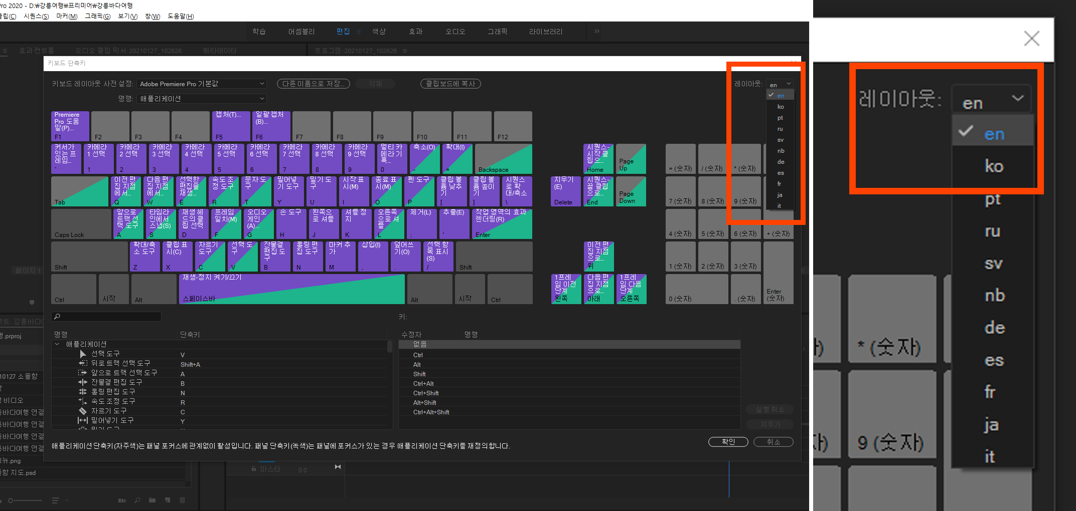 어도비 프리미어 단축키 변경 저장 적용(불러오기) 방법, 단축키 작동이 안 될 때, 단축키 동작, Adobe Premiere Key Shot 프리미어 단축키 저장 불러오기 영상 자료. 단축키레이아웃 어도비