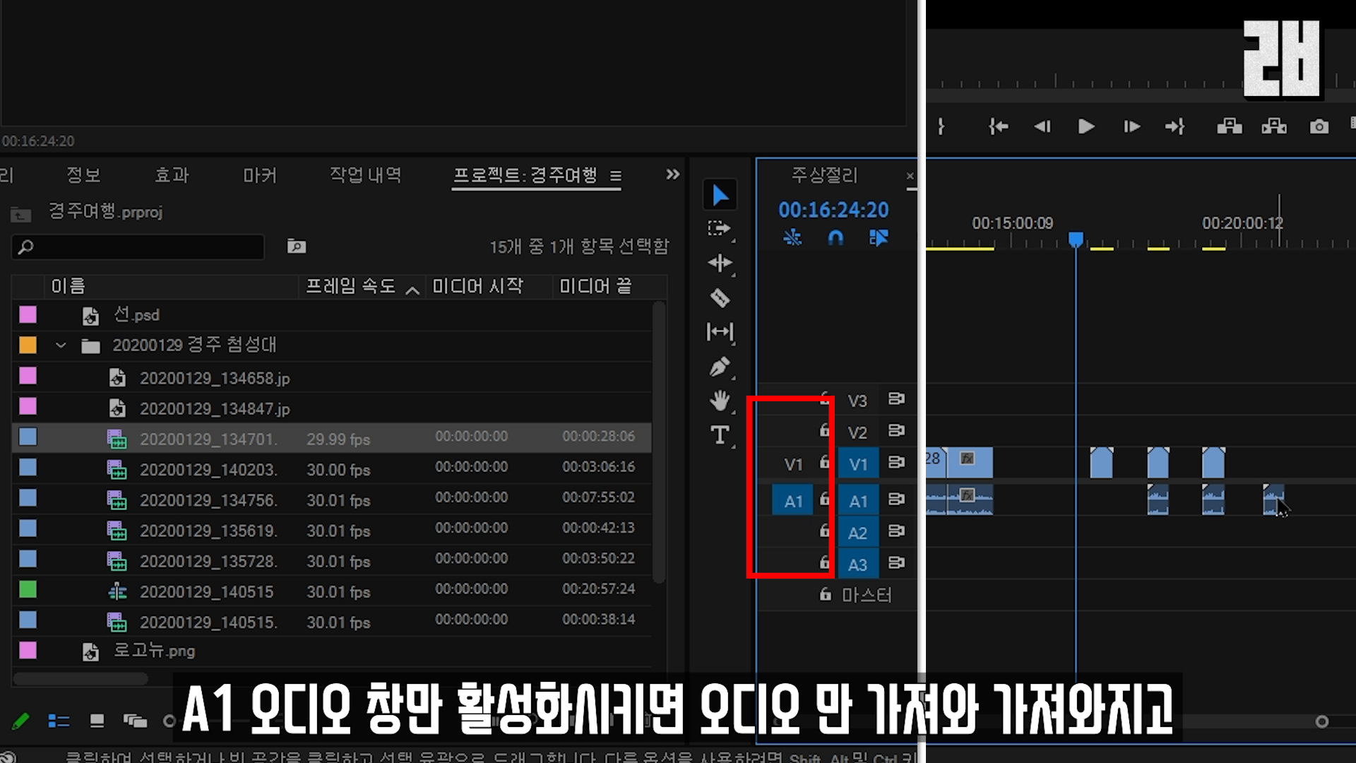 프리미어 타임라인 오디오 파일만 들어올 때, 영상(비디오)도 같이 불러오는 방법.