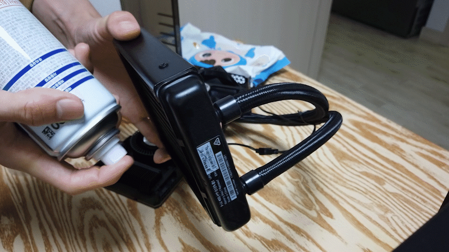 컴퓨터 청소, 다이소 먼지 제거 스프레이 강하게 사용하기, 일체형 수냉쿨러 라디에이터 청소 후