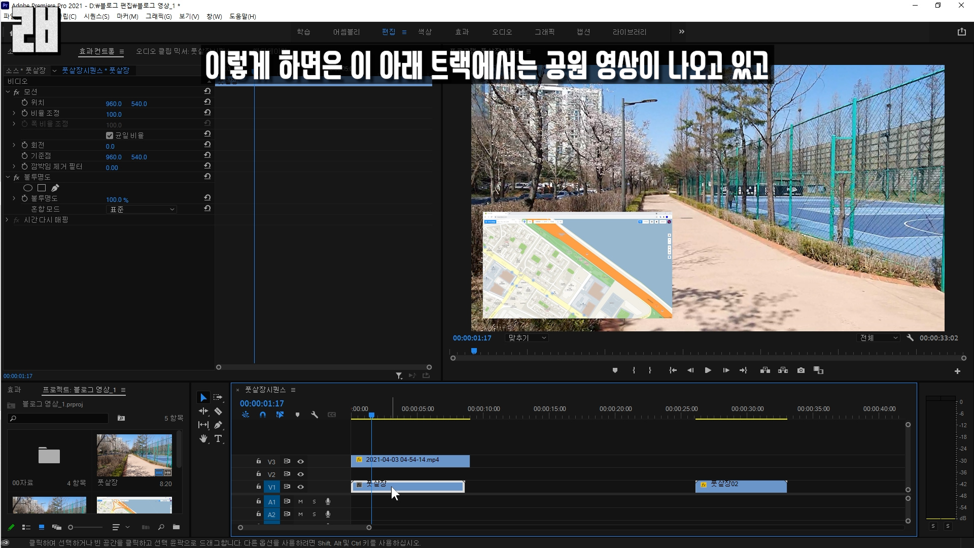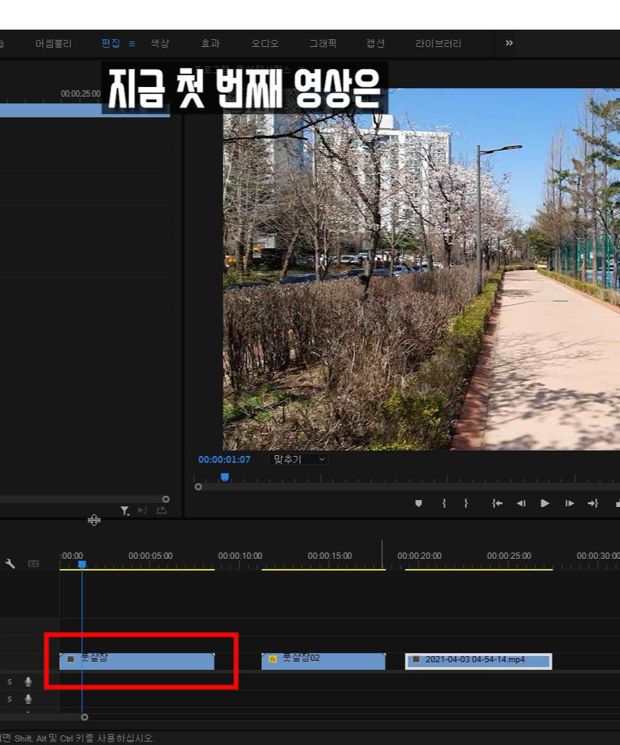 이렇게 하면은 이 아래 트랙에서는 공원 영상이 나오고 있고