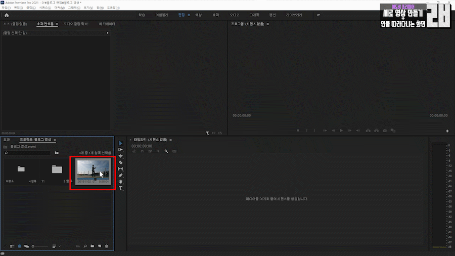 일단 이 영상을 타임라인에 옮기면 시퀀스가 생성이 됩니다.
