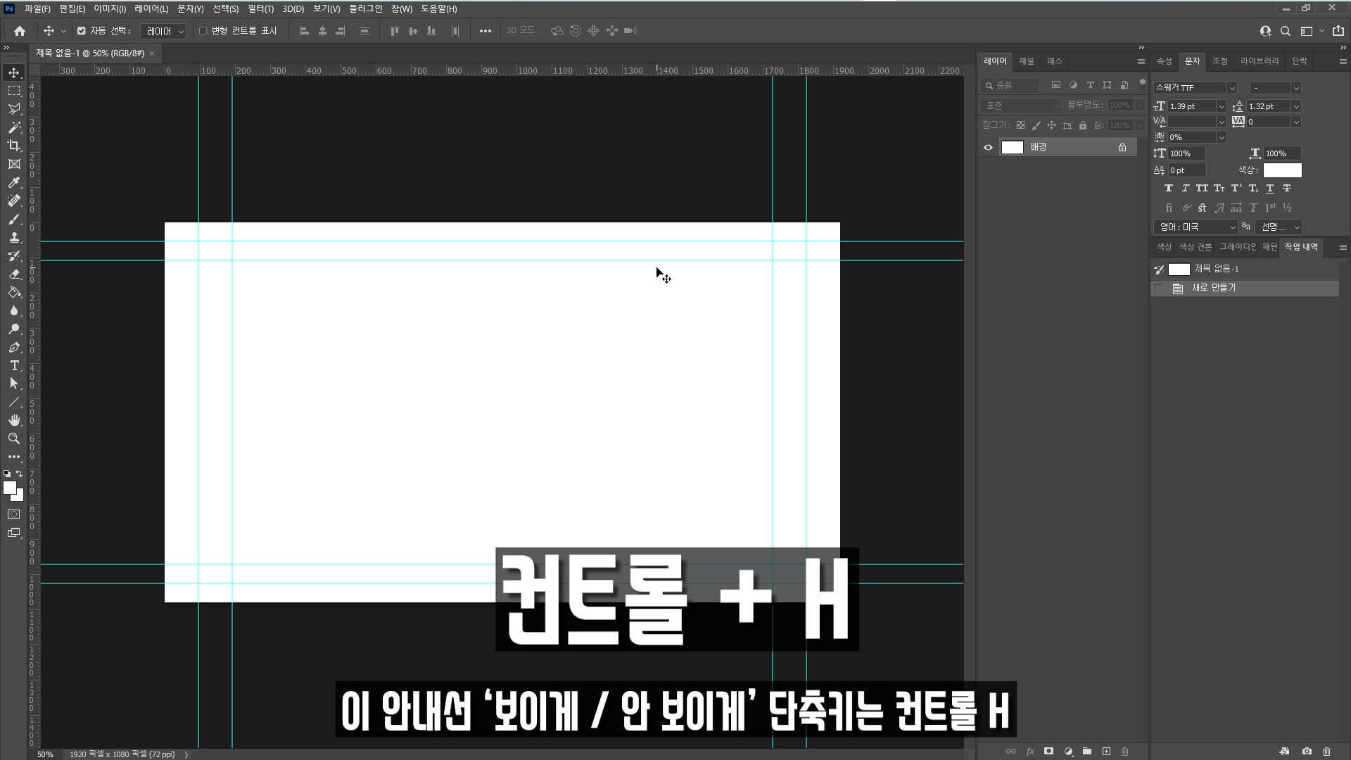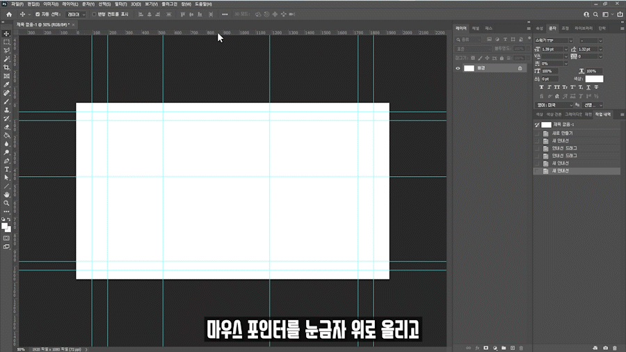 포토샵 안내선(가이드선) 없애기 , 만들기, 생성, 표시선, 민트선, 파란선, 눈금자 단축키, 안내선 단축키 설명 영상.