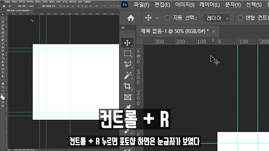 포토샵 눈금자 '보이기 없애기' 단축키 ctrl + r (컨트럴+r).