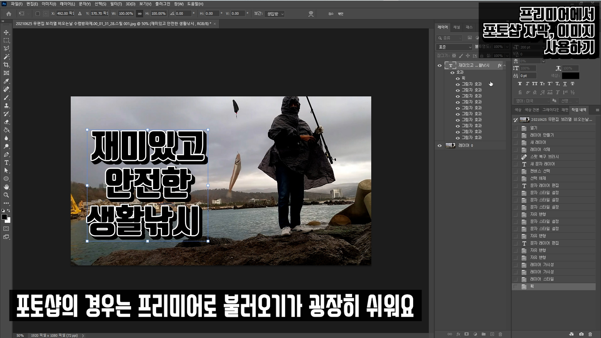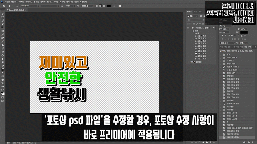 특히 포토샵에서 자막(or 이미지) 작업을 한 이후에 프리미어로 가져와서 작업하는 경우는 매우 흔해요.