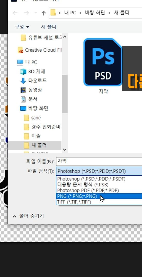 포토샵에서 확실하게 PNG형식으로 출력하려면