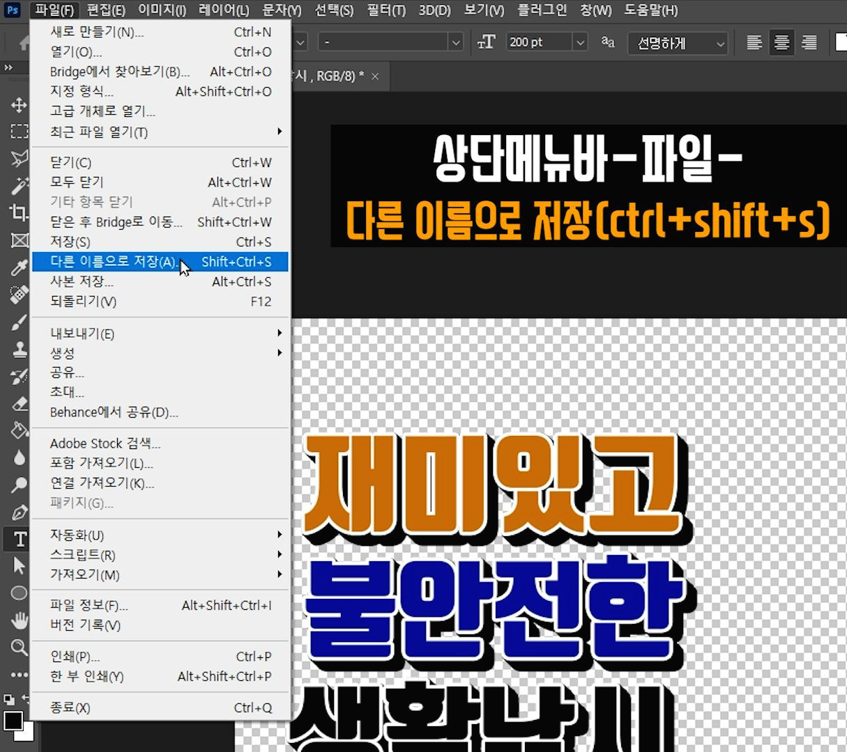 상단 메뉴바 - 파일 - 다른 이름으로 저장