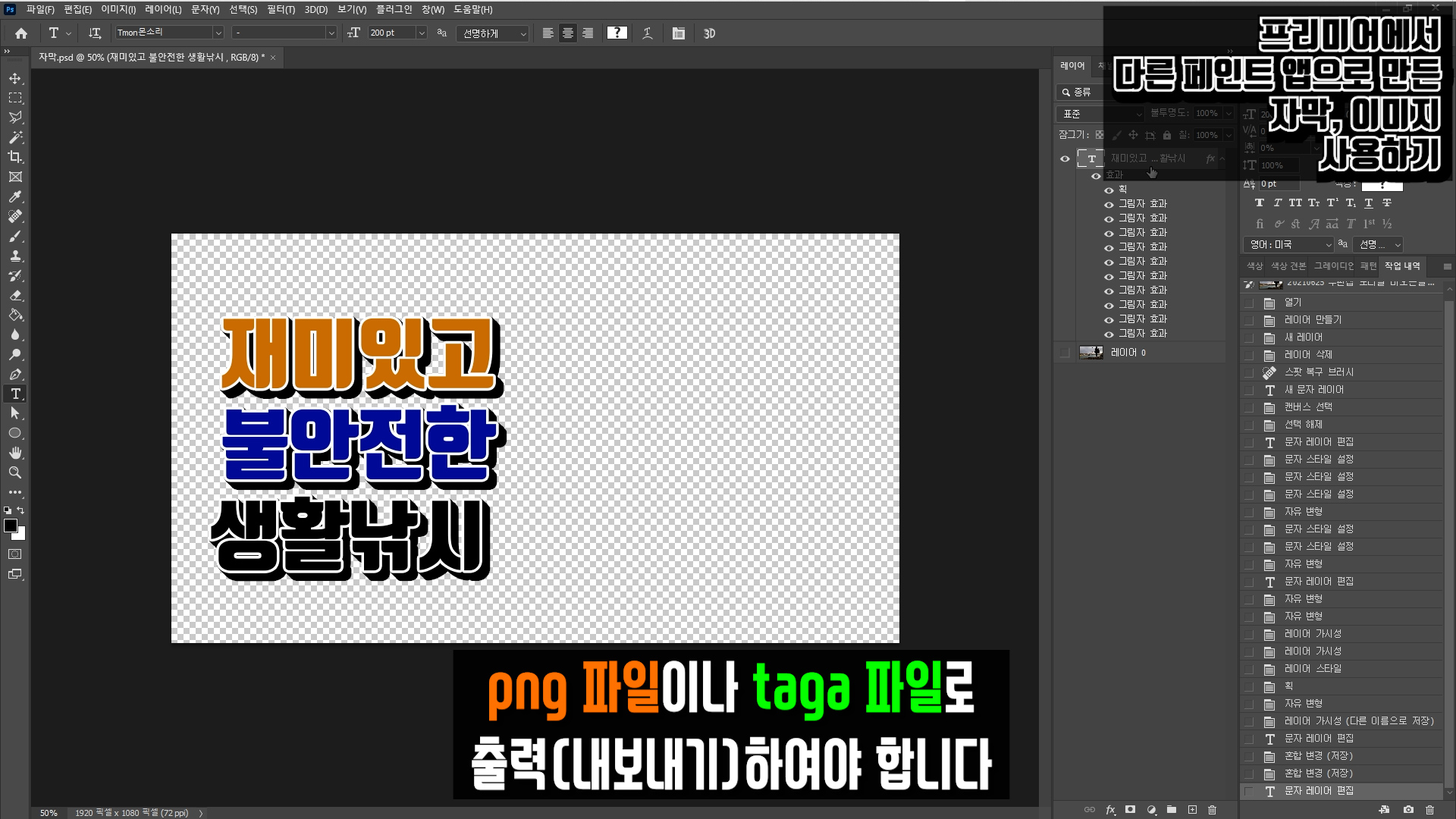 프리미어에서 포토샵 자막(or 이미지 그림) 사용 방법, 외부 페인트 앱에서 자막(그림)을 만들어서 편집 프로그램에서 이용하는 방법.