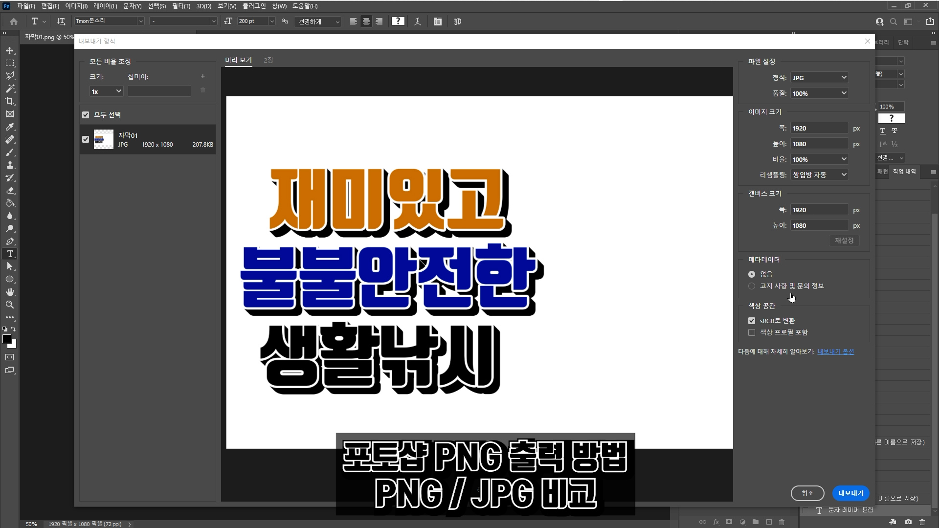 포토샵 내보내기 형식을 통해서 비교해본 PNG / JPG.