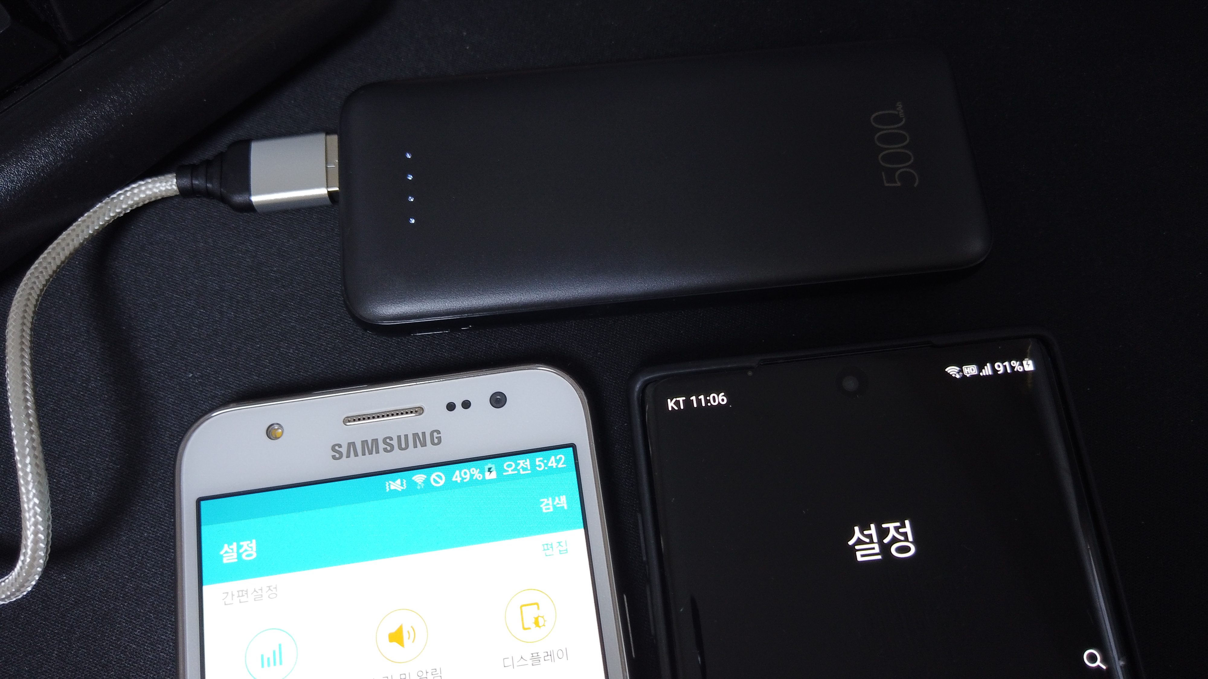 스마트폰 상단을 확인해 보면 동시에 두 가지 스마트폰을 충전하고 있는 모습을 볼 수 있어요.