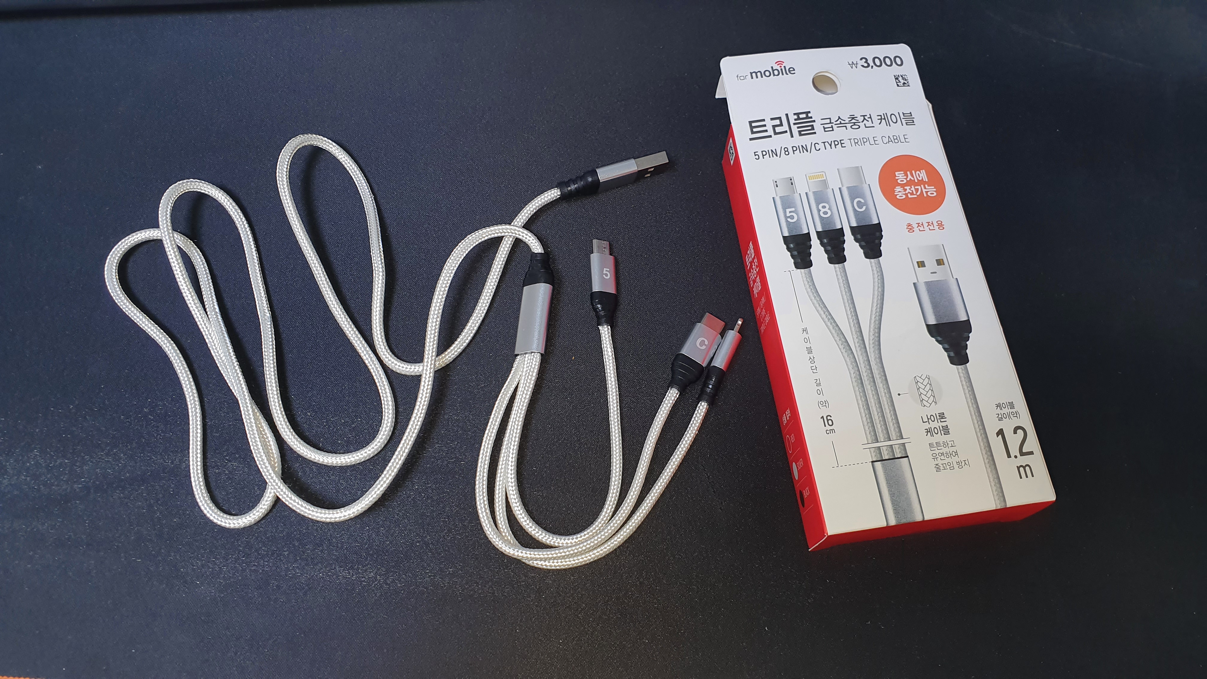 다이소 충전 선. for mobile 트리플 급속충전 케이블.