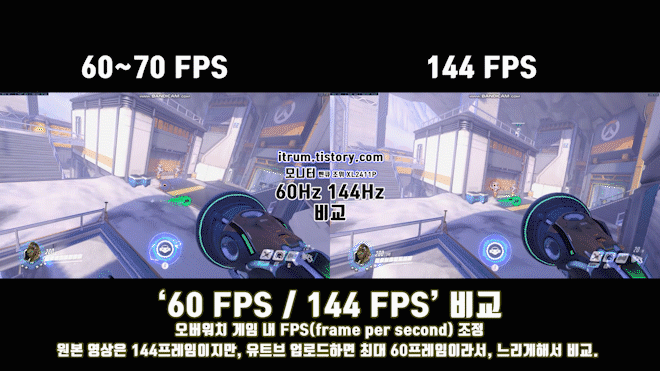 60 프레임 144 프레임 비교. 60헤르츠, 144헤르츠 차이. 60hz, 144hz 비교. 모니터 주사율 60Hz과 144Hz비교 영상, 화면 글 입니다. 모니터 '벤큐 XL2411P 144헤르츠(hz)'를 사용합니다. BENQ 벤큐 XL2411P..