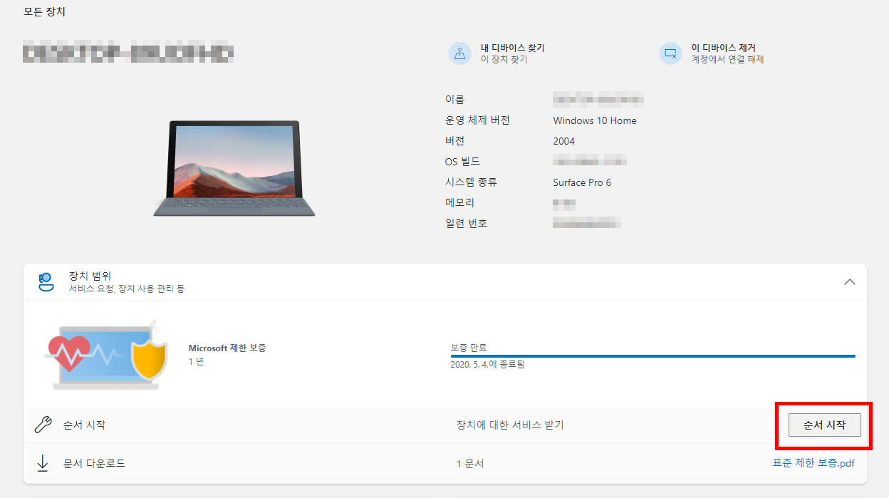 저의 서피스프로6(Surface pro) 태블릿PC 는 2020년 5월 4일에 보증이 종료되었습니다.