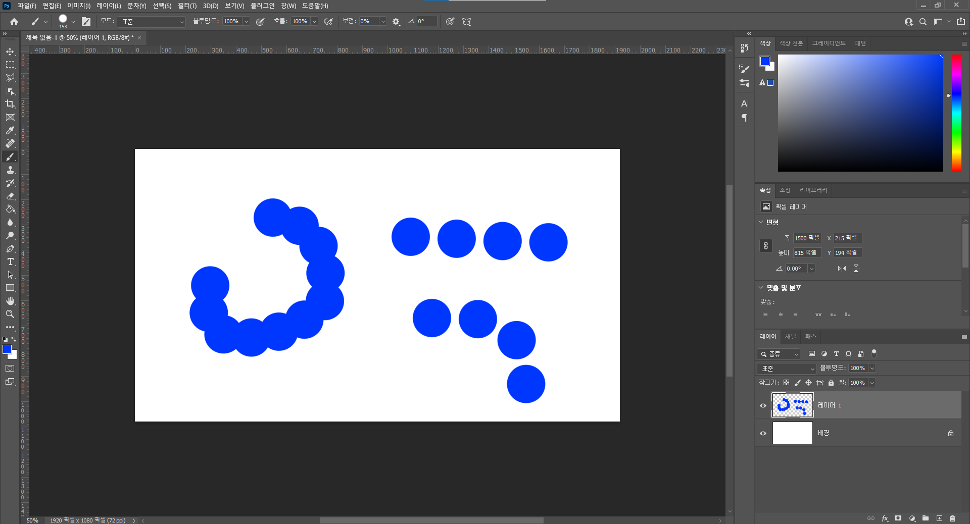 포토샵 사용하다보면 내가 무슨짓을 한건지 모르겠는데, 브러쉬 간격이 넓어지는 경우가 있습니다.