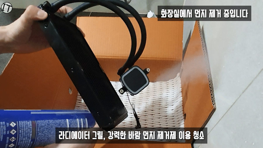 일체형 수냉쿨러 라디에이터 그릴 사이에 먼지는 깔끔하게 제거 되지는 않습니다.