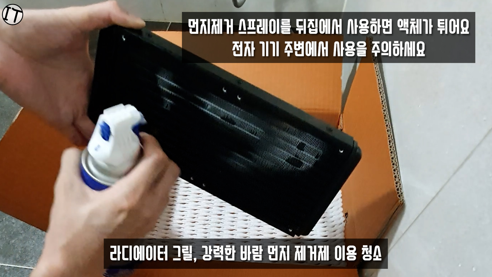 하지만, 라디에이터 그릴의 먼지는 제트건 바람으로 제거하는 방법 말고는 다른 먼지제거 방법이 없어요.