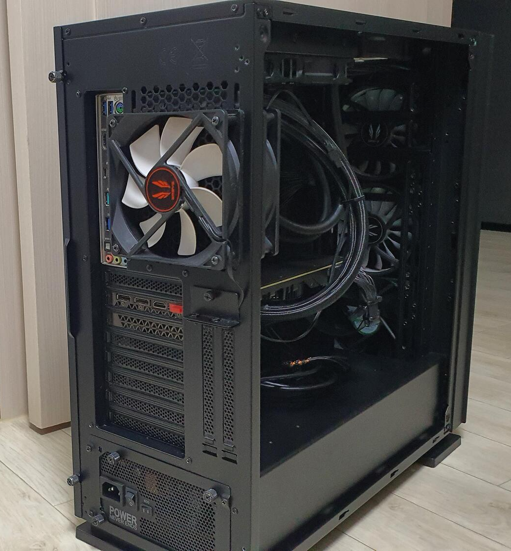 본체 뒤에 쿨러가 하나 더 붙어 있어서 이상할 텐데, 제가 봐도 기괴하네요.