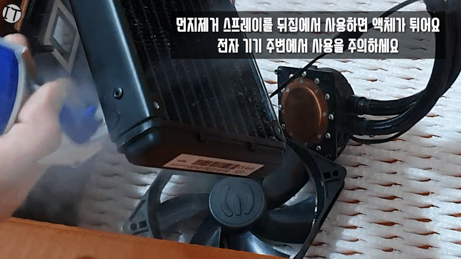일체형 수냉 쿨러 그릴 먼지 청소 All-in-one water cooler grill dust cleaning.
