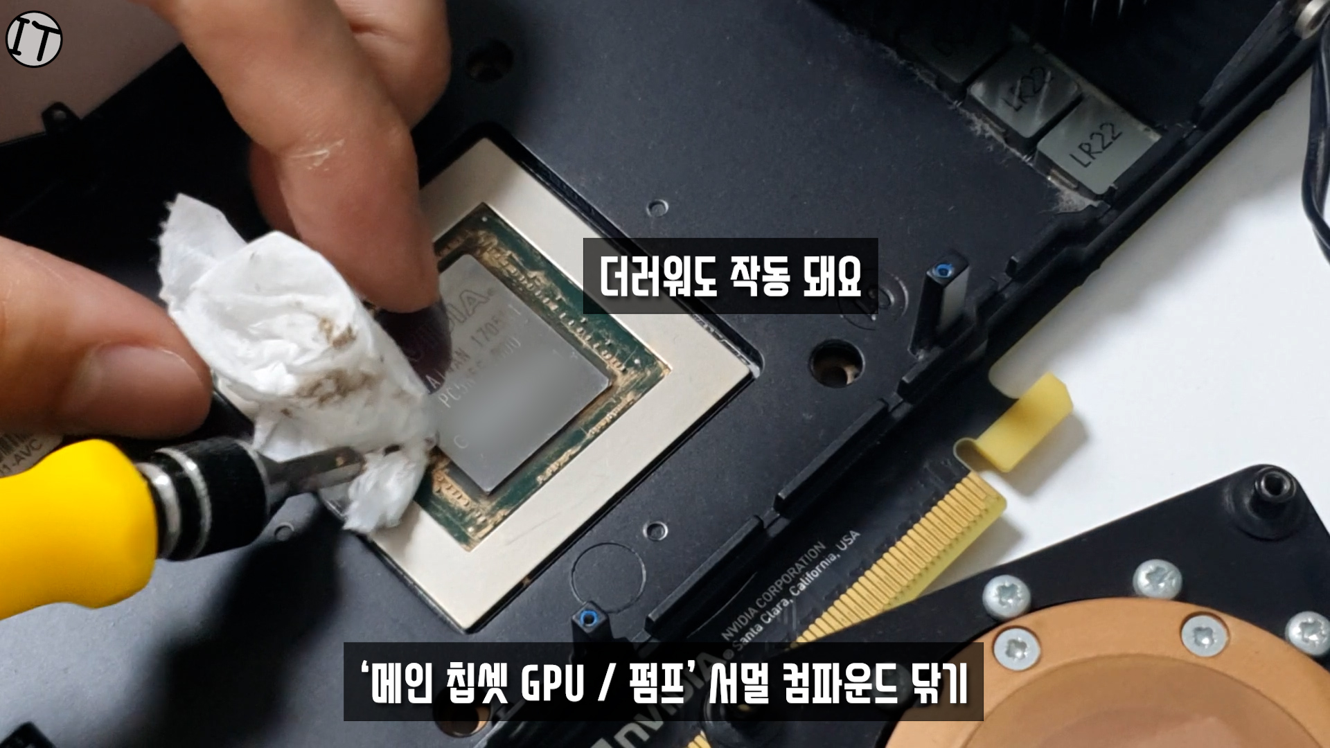 써멀 컴파운드(서멀구리스) 꼼꼼하게 닦지 않아도 그래픽카드는 잘 작동됩니다.