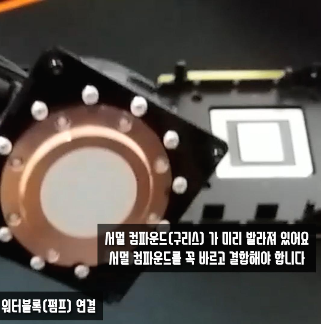 그래픽카드 GPU(메인칩셋)과 워터블록을 딱 결합해줍니다.