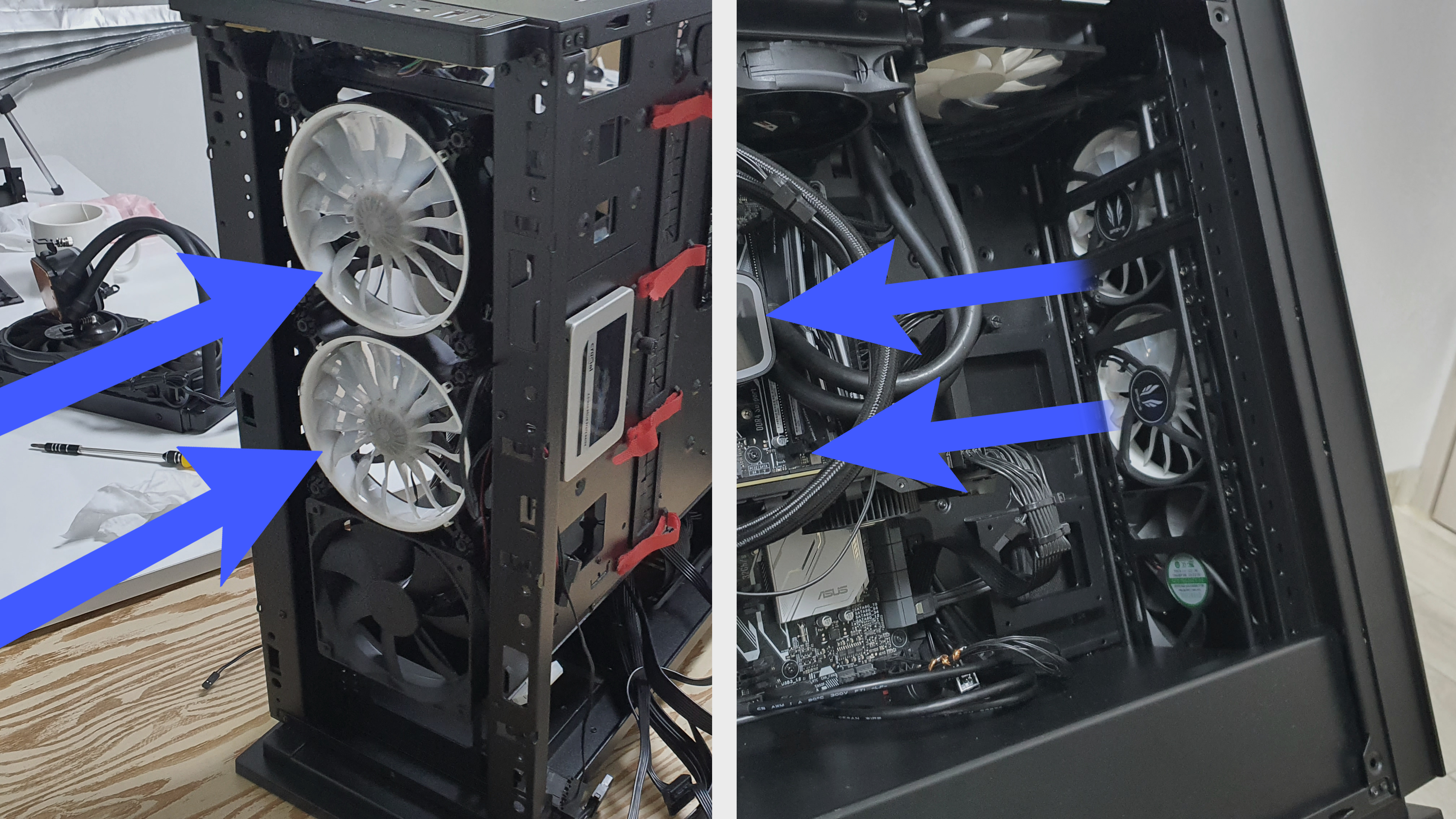 케이스 쿨러(쿨링 팬) 방향, 발열 때문에 게임 렉 걸릴 때, 컴퓨터 시스템 쿨러, 본체 공기 방향 기류, 쿨러 설치 방법 사이즈 소음. 짭수 후기.