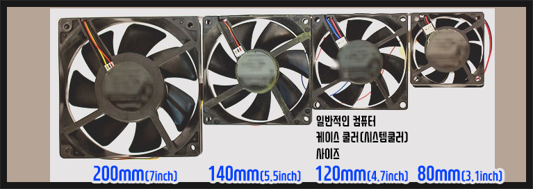 일반적인 컴퓨터 본체(케이스 case)의 쿨러의 크기는 120mm입니다.
