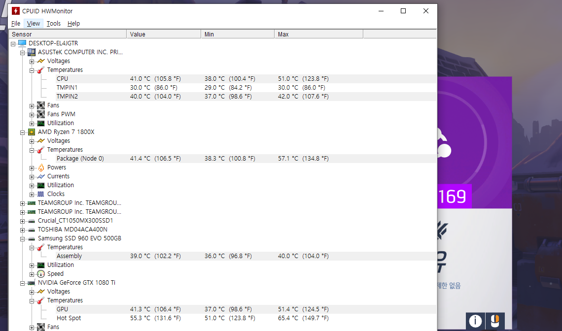 오버워치 게임할 때 'CPU, GPU 등' 하드웨어 온도가 60도를 넘지 않아서 굉장히 만족스럽네요.