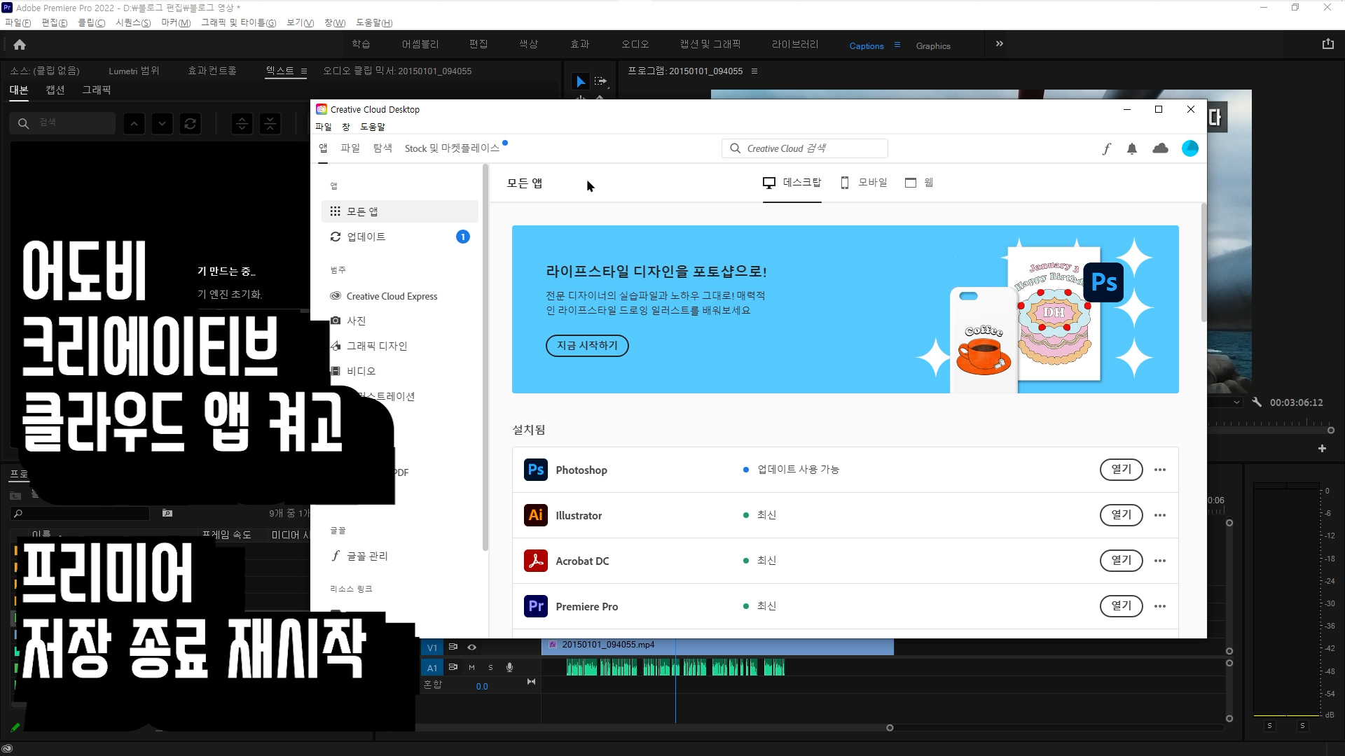 프리미어를 '저장, 종료, 재시작' 해줍니다.