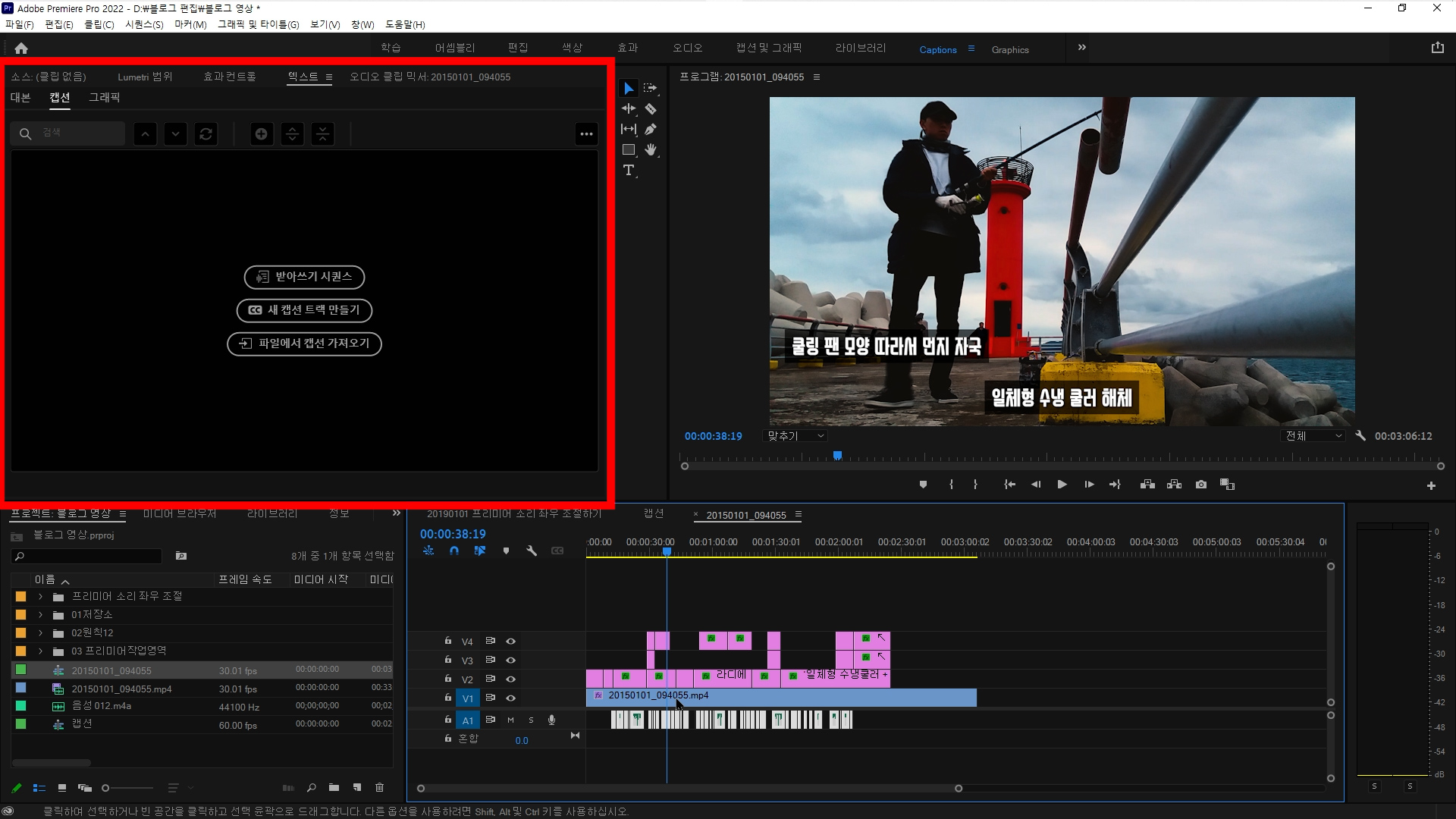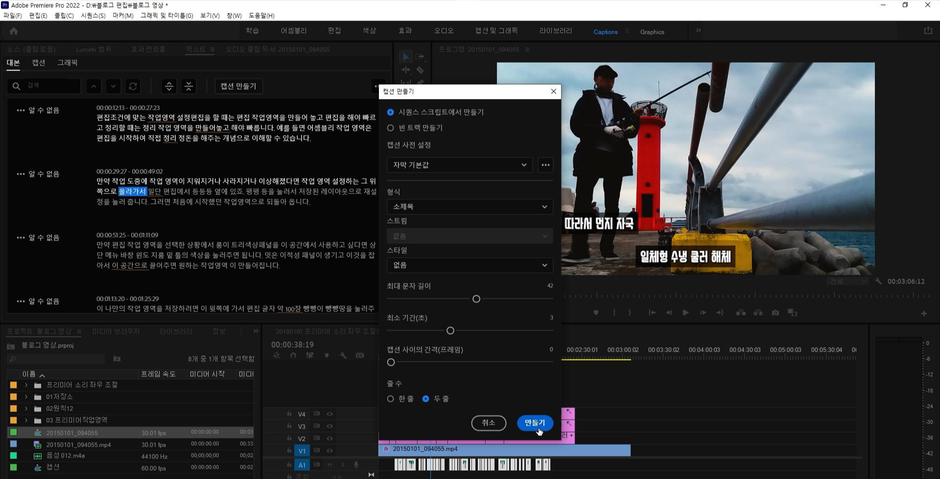 텍스트 패널의 '캡션 만들기'를 눌러주면,