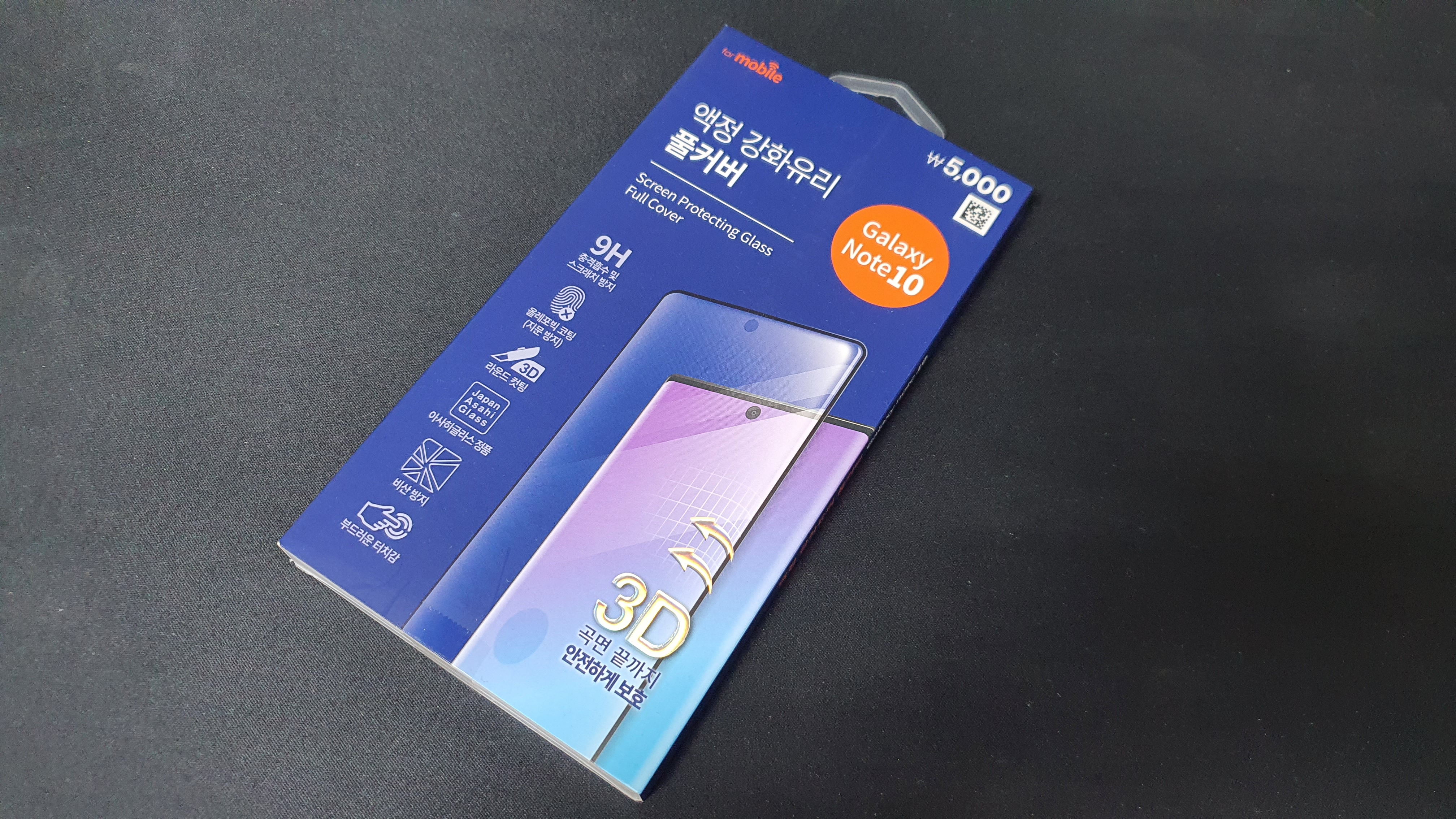 다이소에서 5000원 주고 구입한 '강화유리 보호 필름 노트10 액정 강화 유리 풀 커버(screen protecting glass full cover galaxy note 10)' 입니다.