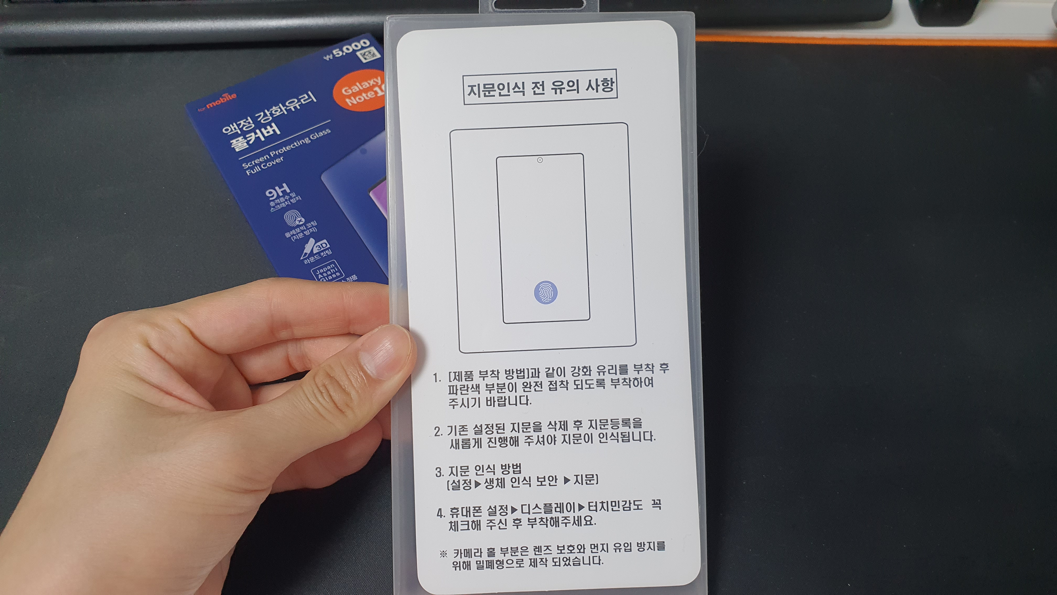 액정을 또다시 깨트리기 싫어서 구매했는데, 노트10 액정 강화 유리 풀 커버를 사용하면 지문 인식이 안됩니다.
