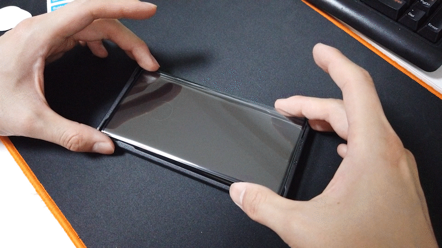 지금은 노트10 액정 강화 유리 풀 커버를 벗겨내서, 가운데 접착제를 알코올 솜으로 문질러서 제거했어요.