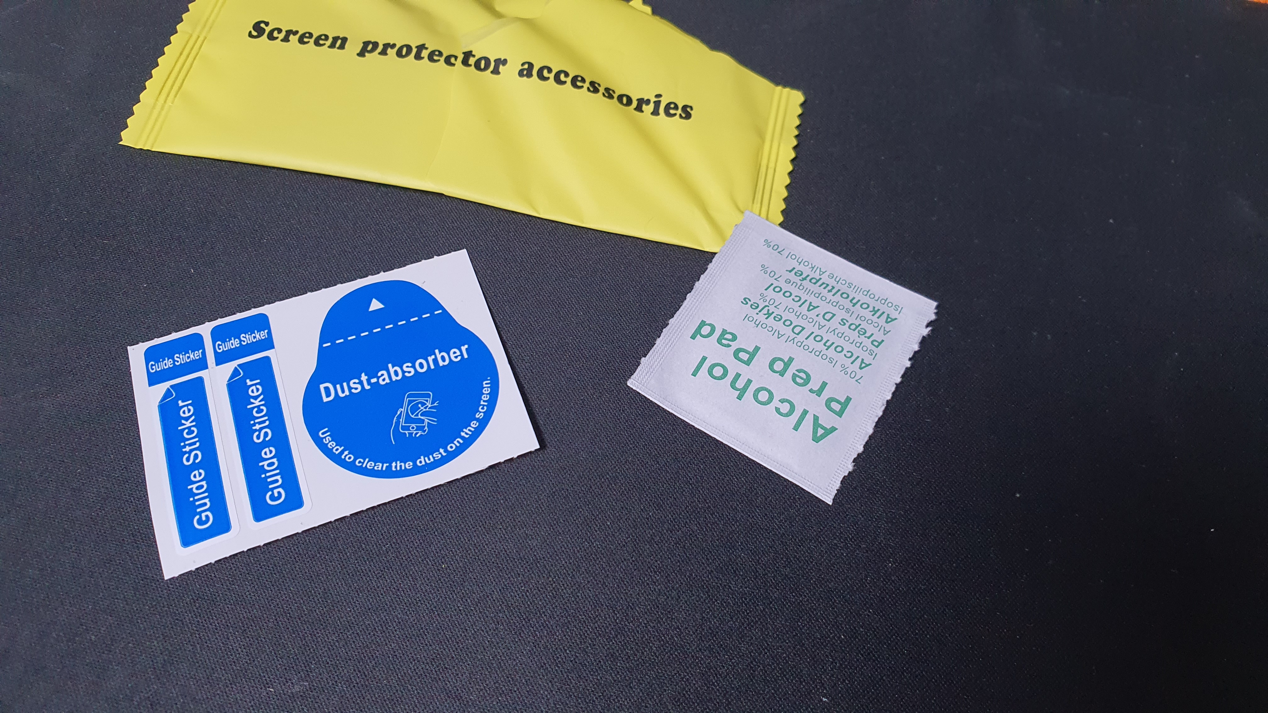 함께 들어 있는 극세사 천, 먼지 제거 스티커, 알코올 솜입니다.
