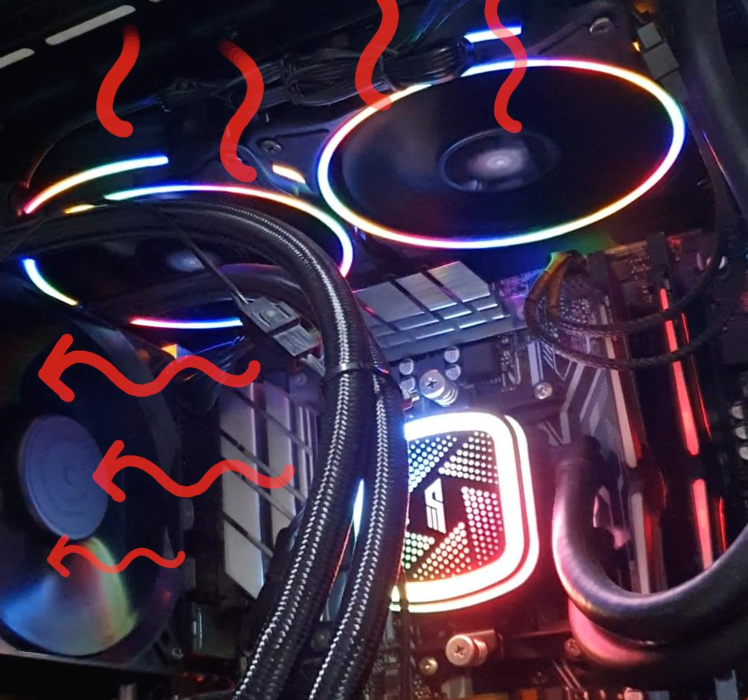 케이스 쿨러(쿨링 팬) 방향, 발열 때문에 게임 렉 걸릴 때, 컴퓨터 시스템 쿨러 , 본체 공기 방향