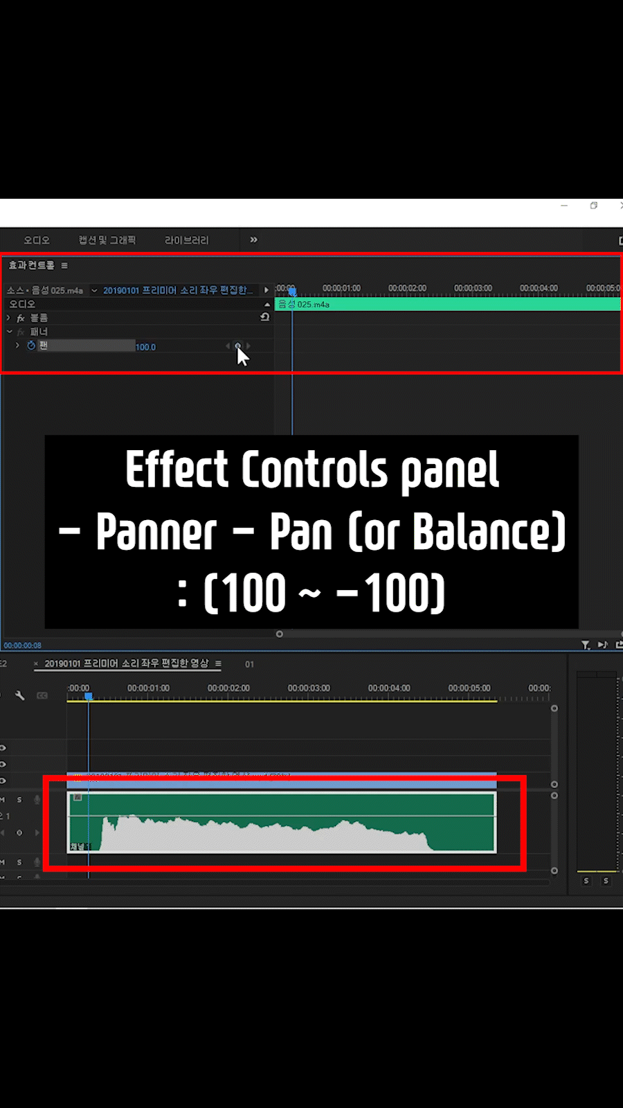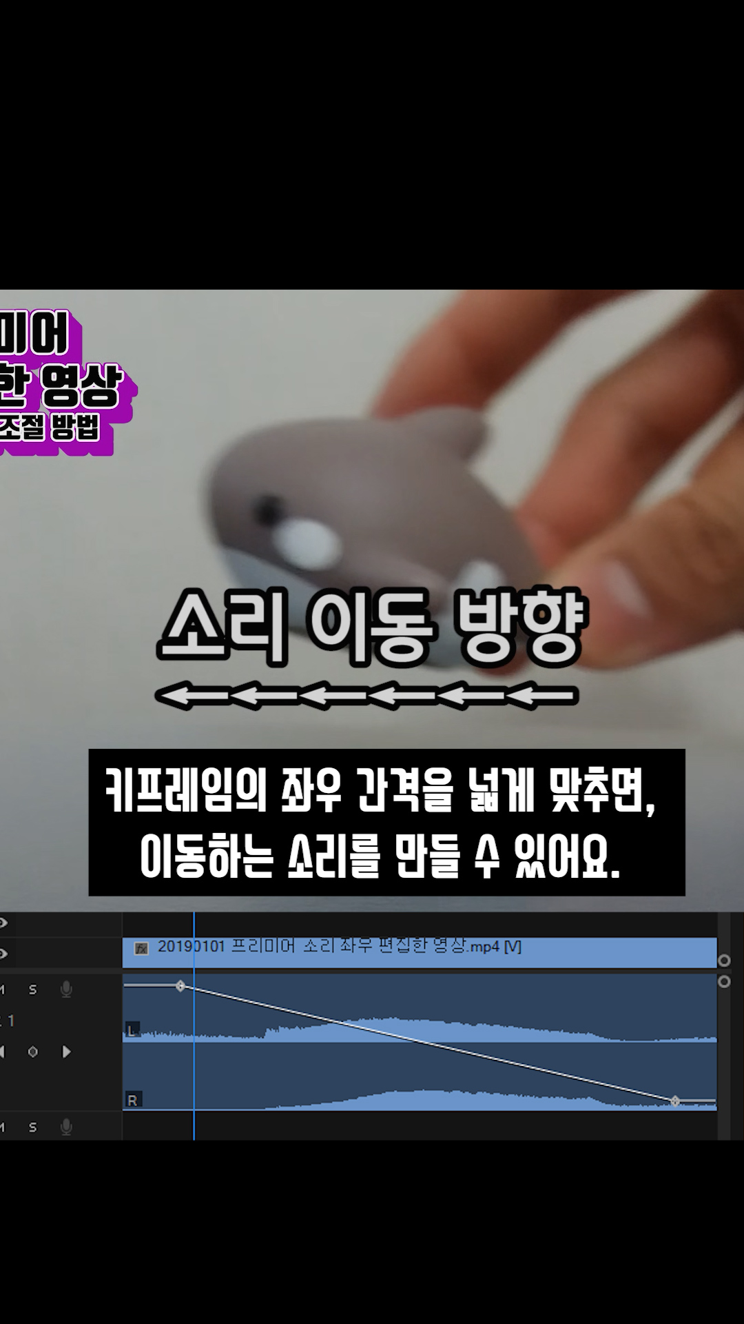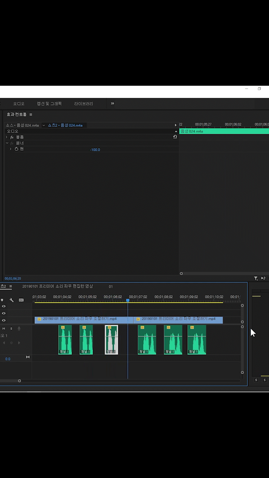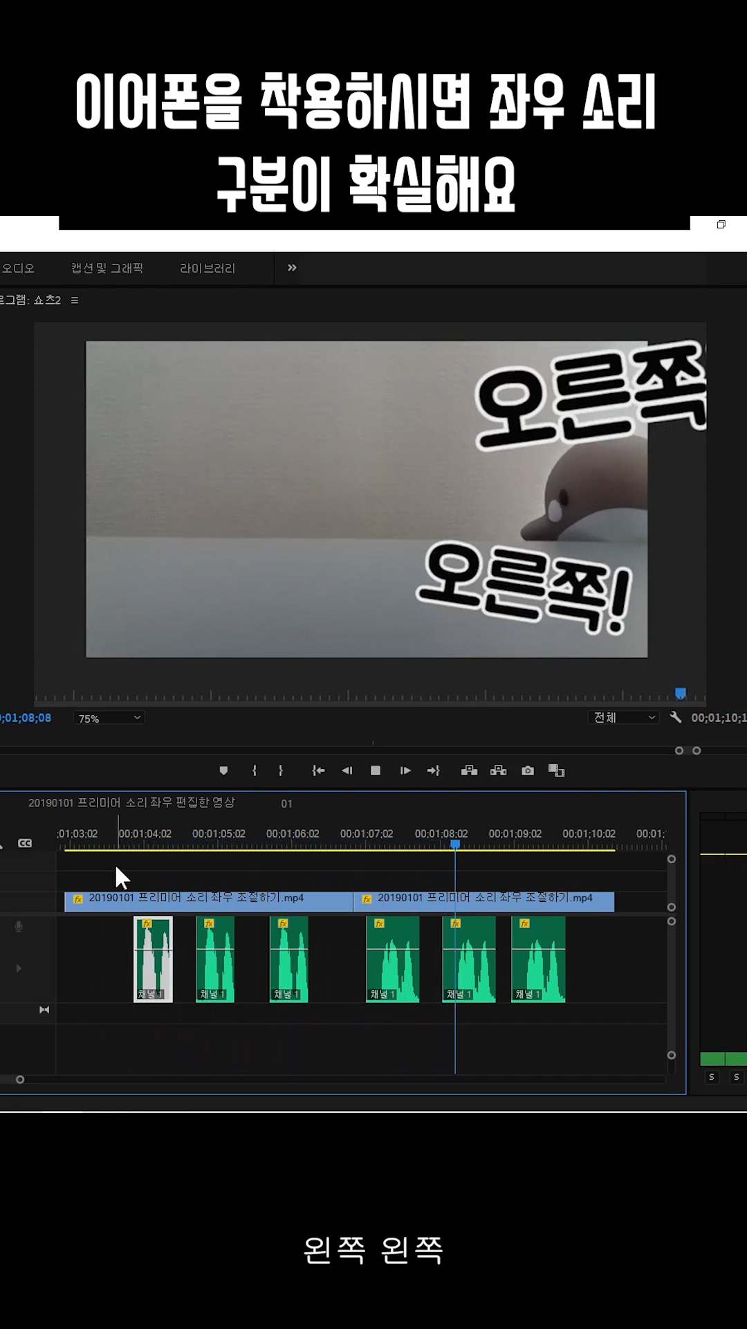 프리미어에서 좌 우 소리 구분하는 방법.