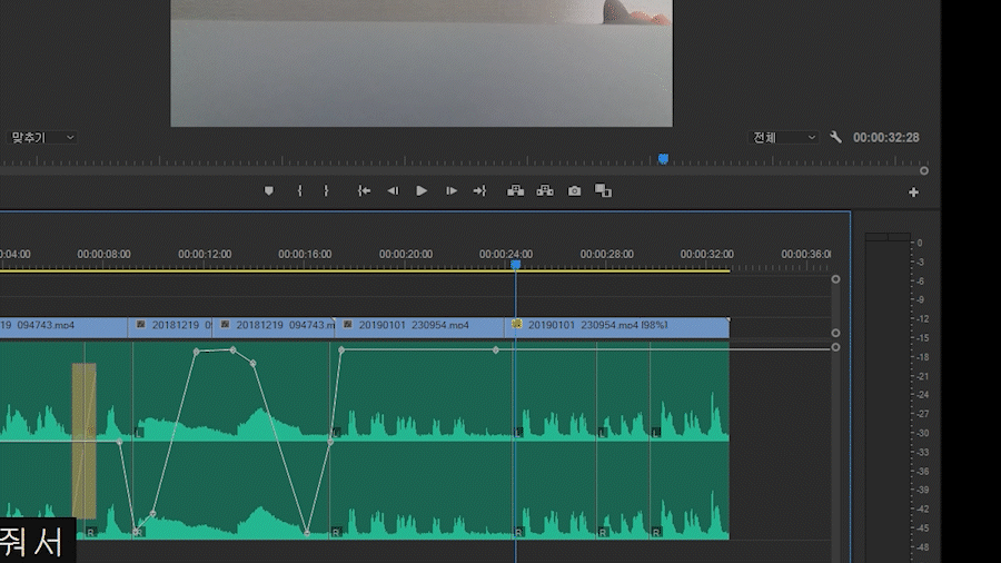 왼쪽 소리를 원하는 클립을 각각 선택해서 바꿔줍니다.