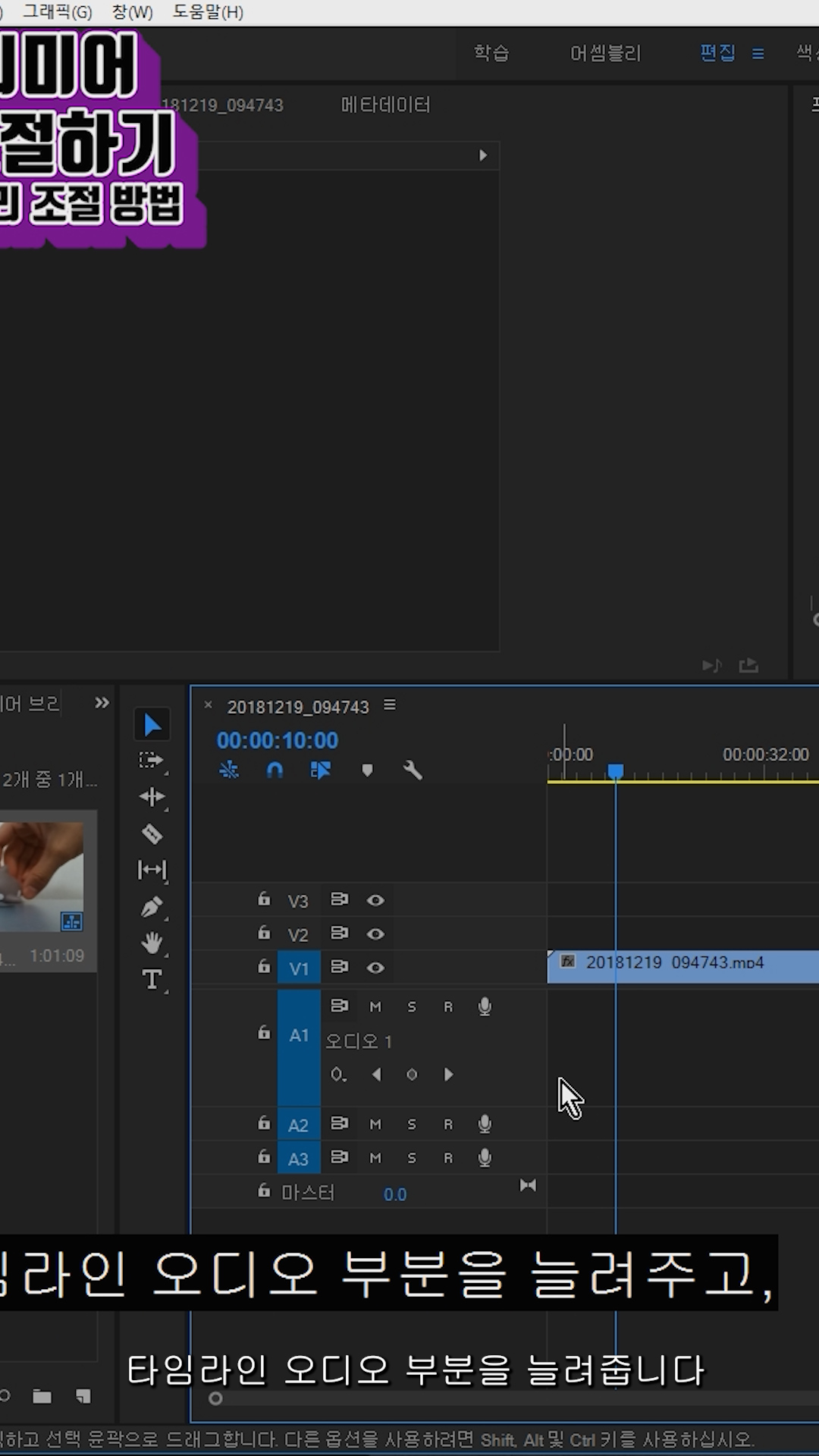 타임라인 오디오 트랙 부분을 늘려줍니다.