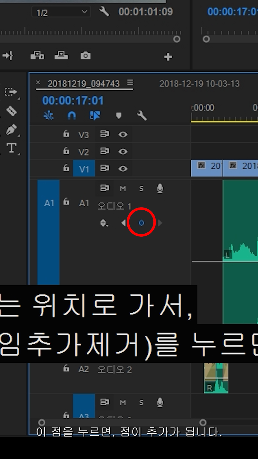 오디오 클립을 선택하고, '키 프레임 표시 버튼'을 누릅니다.