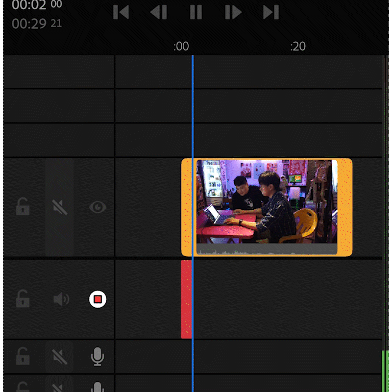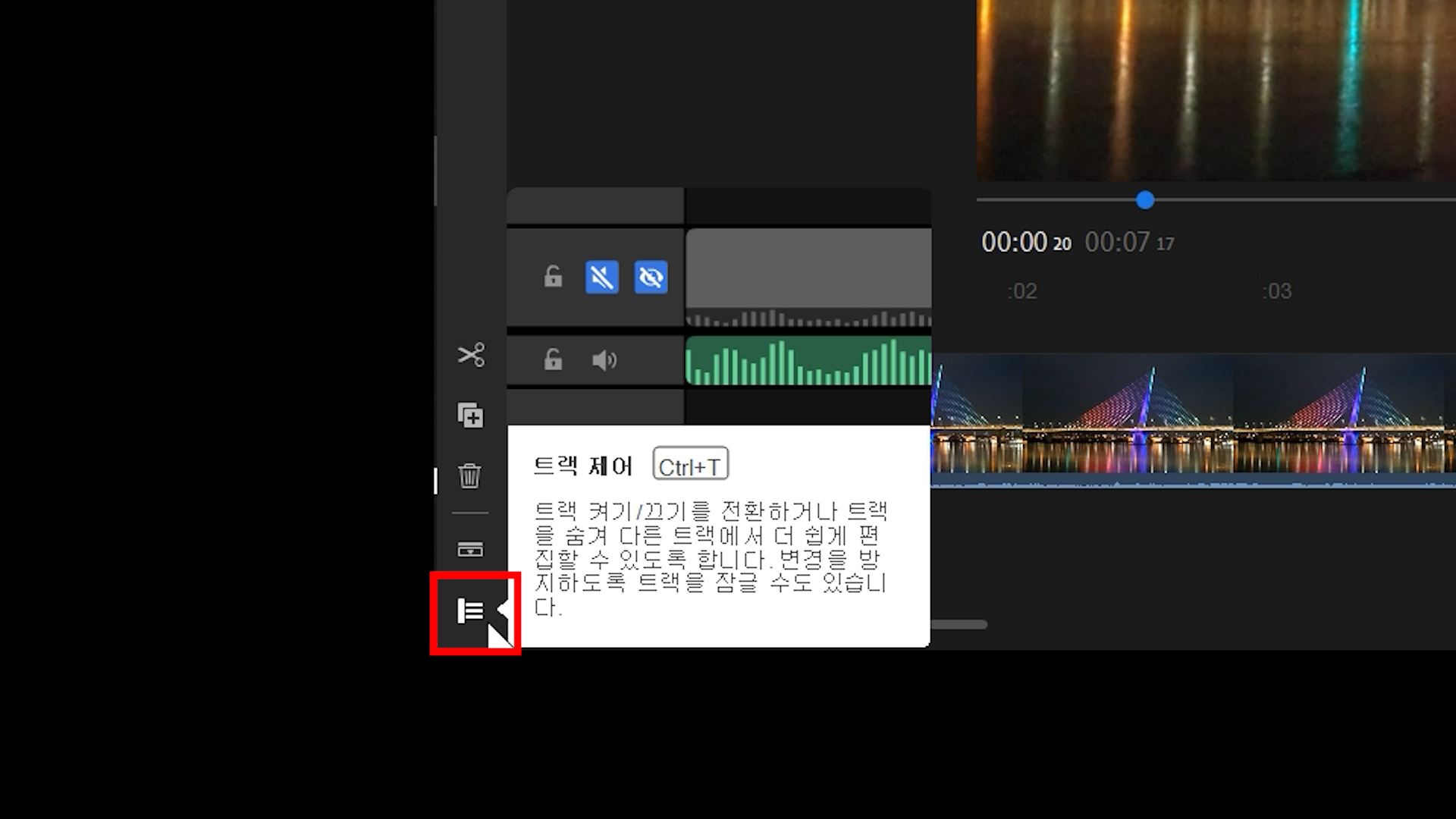 이때 구석에 '세줄' 버튼을 클릭하면 트랙이 나타납니다. 타임라인이 등장해요.