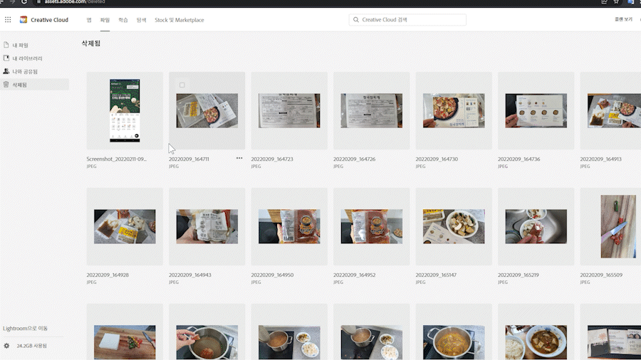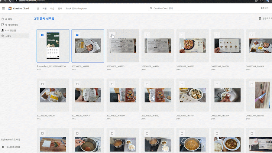 어도비 클라우드 여러 파일 삭제 방법.