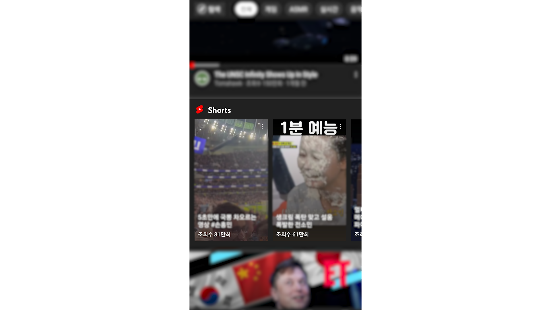 일반적으로 쇼츠(shorts)는 스마트폰으로 많이 보기 때문에 스마트폰 장면을 캡처합시다.
