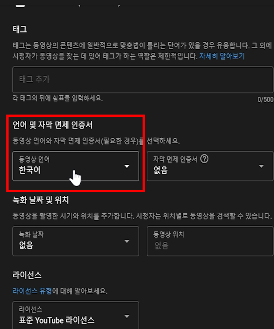 동영상 언어 - 한국어.