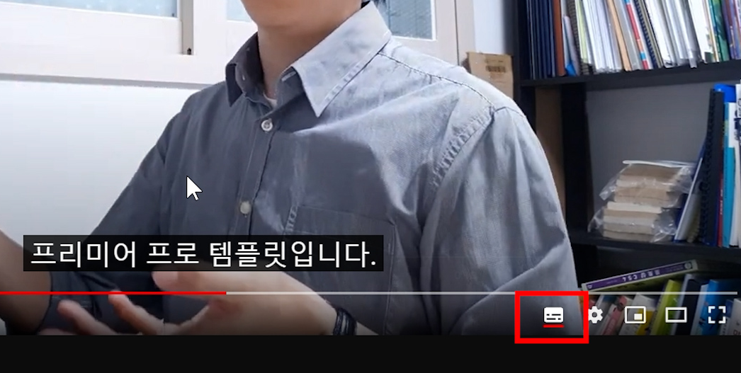 캡션 자막 버튼을 누르면 자막을 '껐다 켰다'가 가 가능합니다.