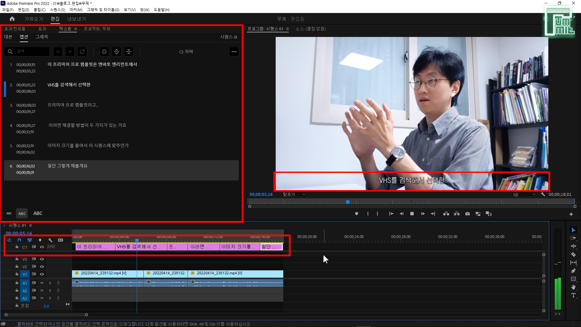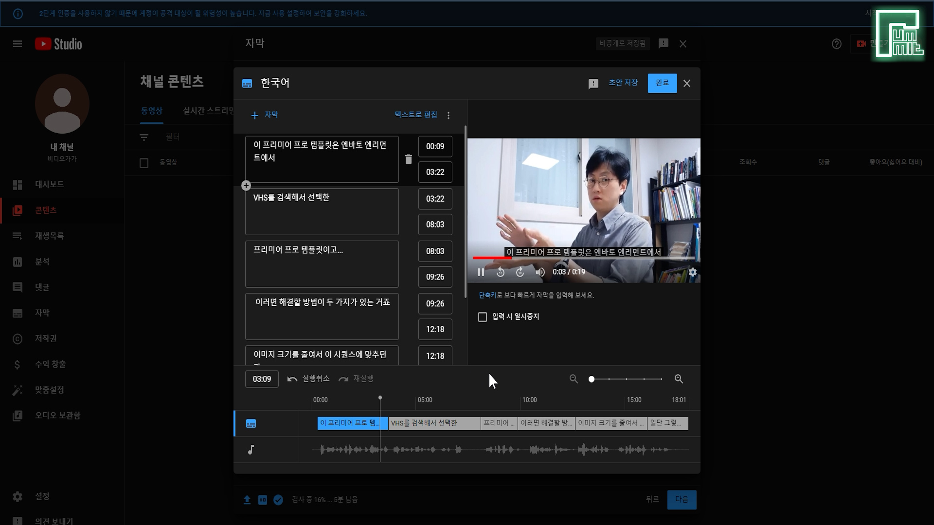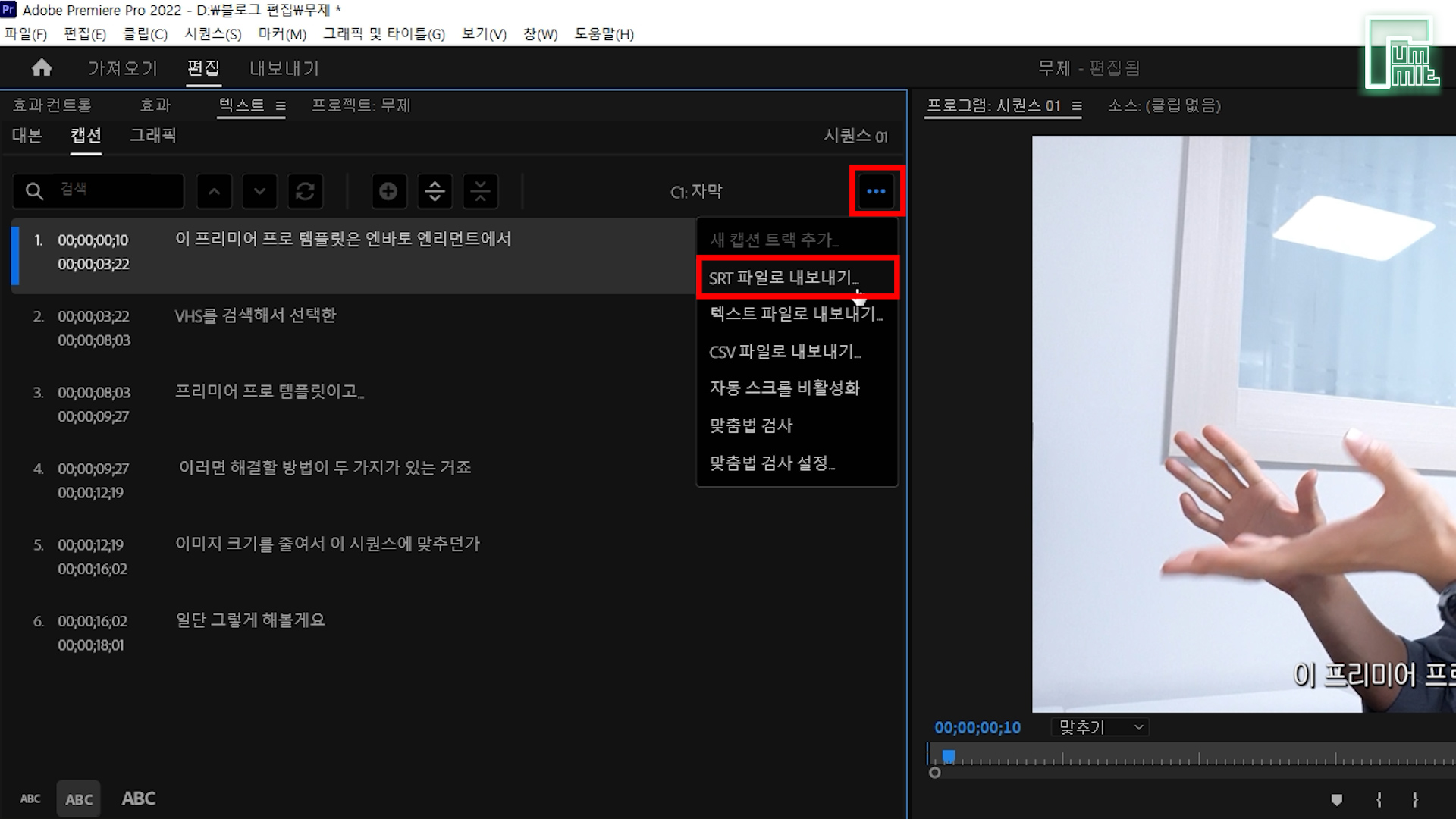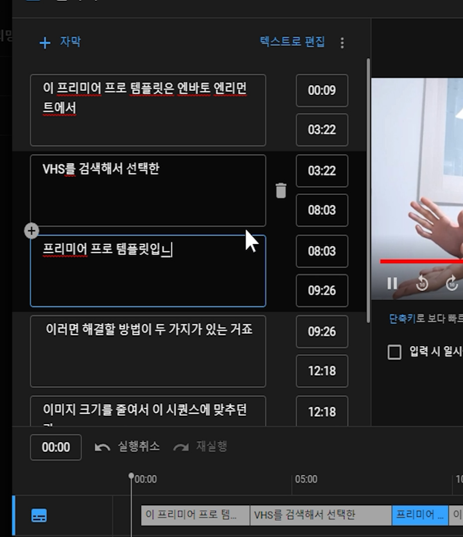 제 영상으로 '프리미어 자막 자동 생성'과 '유튜브 자막 업로드' 까지 보여드릴게요.