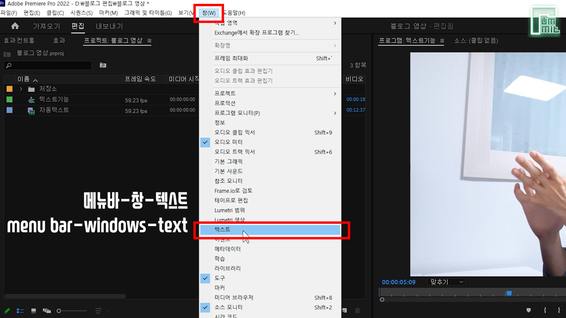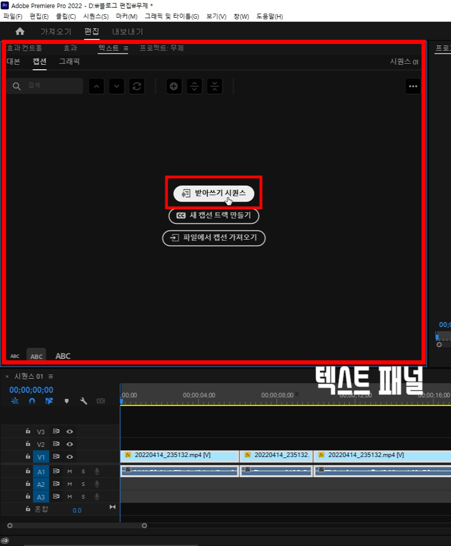 프리미어에서 자동 자막 작성 방법.